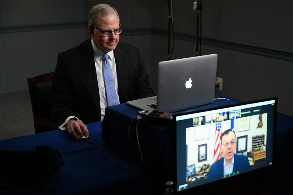 (Pictured: John Sherman, now the Department of Defense’s chief information officer, participates in a virtual panel discussion on cybersecurity at the Pentagon in 2021.)