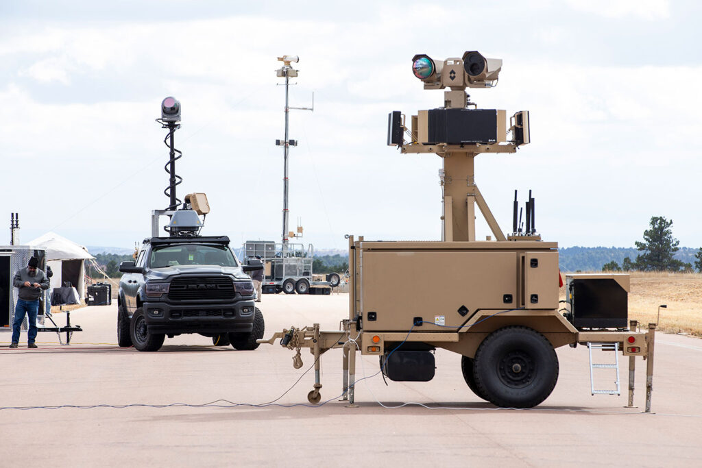 Vendors at Falcon Peak included Squarehead Technology, which has developed an acoustic system that pinpoints drones by sound. “You see a lot of drones flying near the ground, in the ground clutter, making it difficult for radars to pick up on them. Acoustics doesn’t have that issue,” Knut Moe, Squarehead Technology vice president of defense, told Fox.