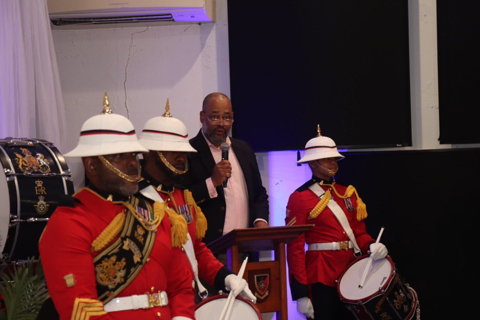 Retired Royal Bermuda Regiment Maj. Marc Telemacque speaks at the RBR’s 60th anniversary ceremony at Camp Warwick in September 2025. ROYAL BERMUDA REGIMENT