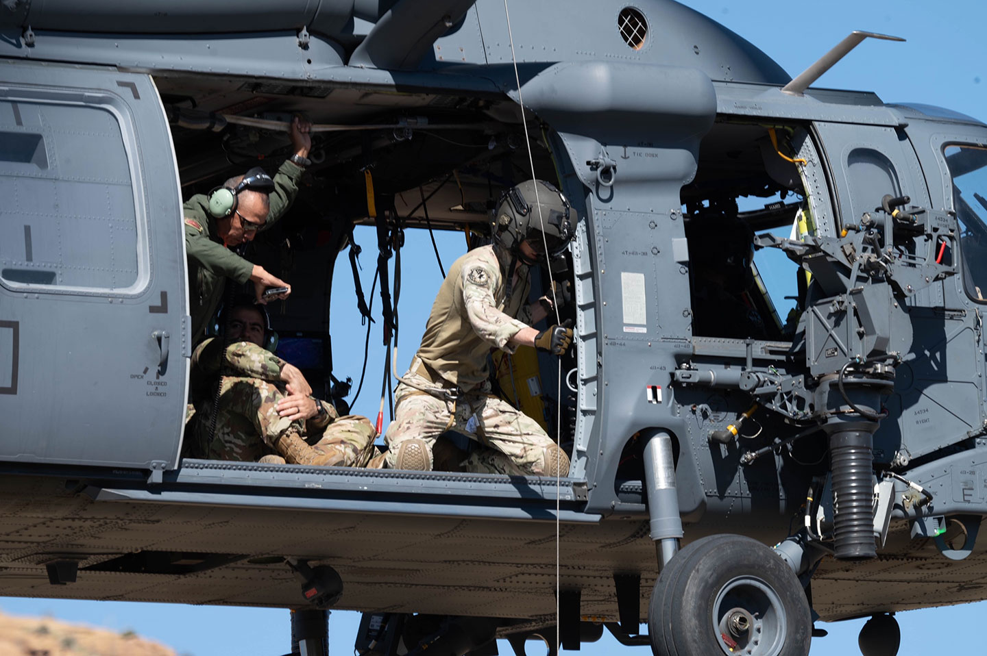 Members of the U.S. and Mexican air forces conduct a search and rescue operation during exercise Amalgam Eagle 2025 at Davis Monthan Air Force Base, Arizona, in October. 355th WING/U.S. AIR FORCE