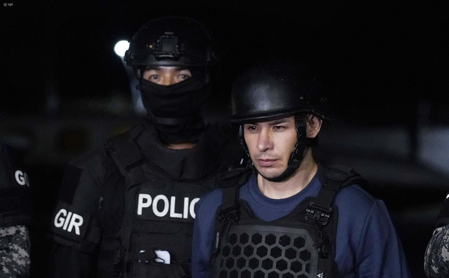 Ángel Esteban Aguilar Morales, captured in Mexico, arrives at the Guayaquil Air Police Station in Ecuador on March 19, 2026. Aguilar is a leader of the transnational criminal group Los Lobos, which the United States government designated as a foreign terrorist organization. REUTERS